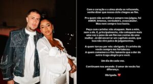 “Peço com carinho: não ataquem. Nem a mim, nem a ele. E, principalmente, não coloquem mais uma vez o peso de um fim nas costas de uma mulher. Já dói encerrar um capitulo assim, que isso não vire palco de julgamentos.”