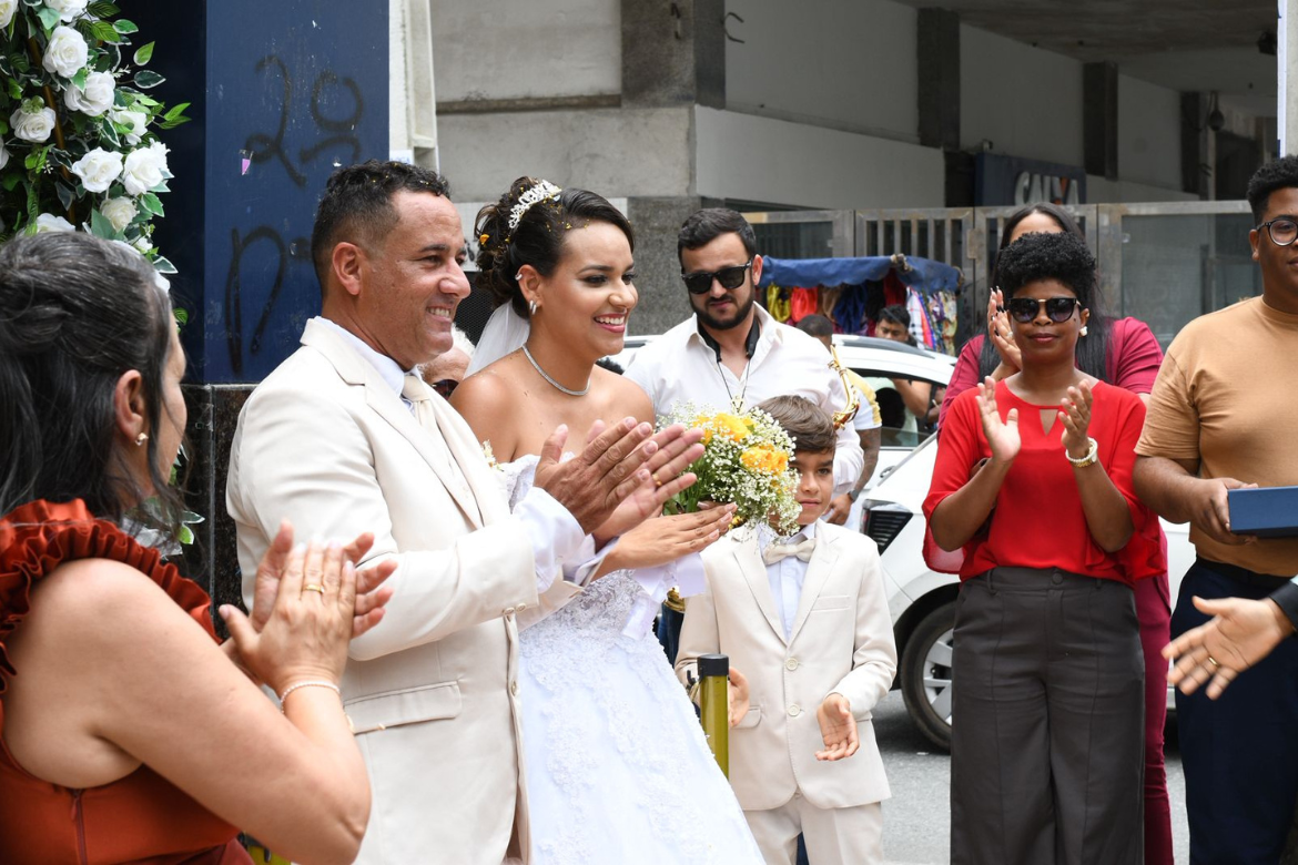 A cerimônia, realizada a céu aberto, contou com limousine, juiz de paz, música ao vivo, convidados, decoração e tudo o que um casamento tradicional tem direito. O ponto alto foi justamente o contraste entre a delicadeza do momento e a energia vibrante das ruas, criando uma cena que emocionou quem passava e rapidamente começou a circular nas redes sociais.
